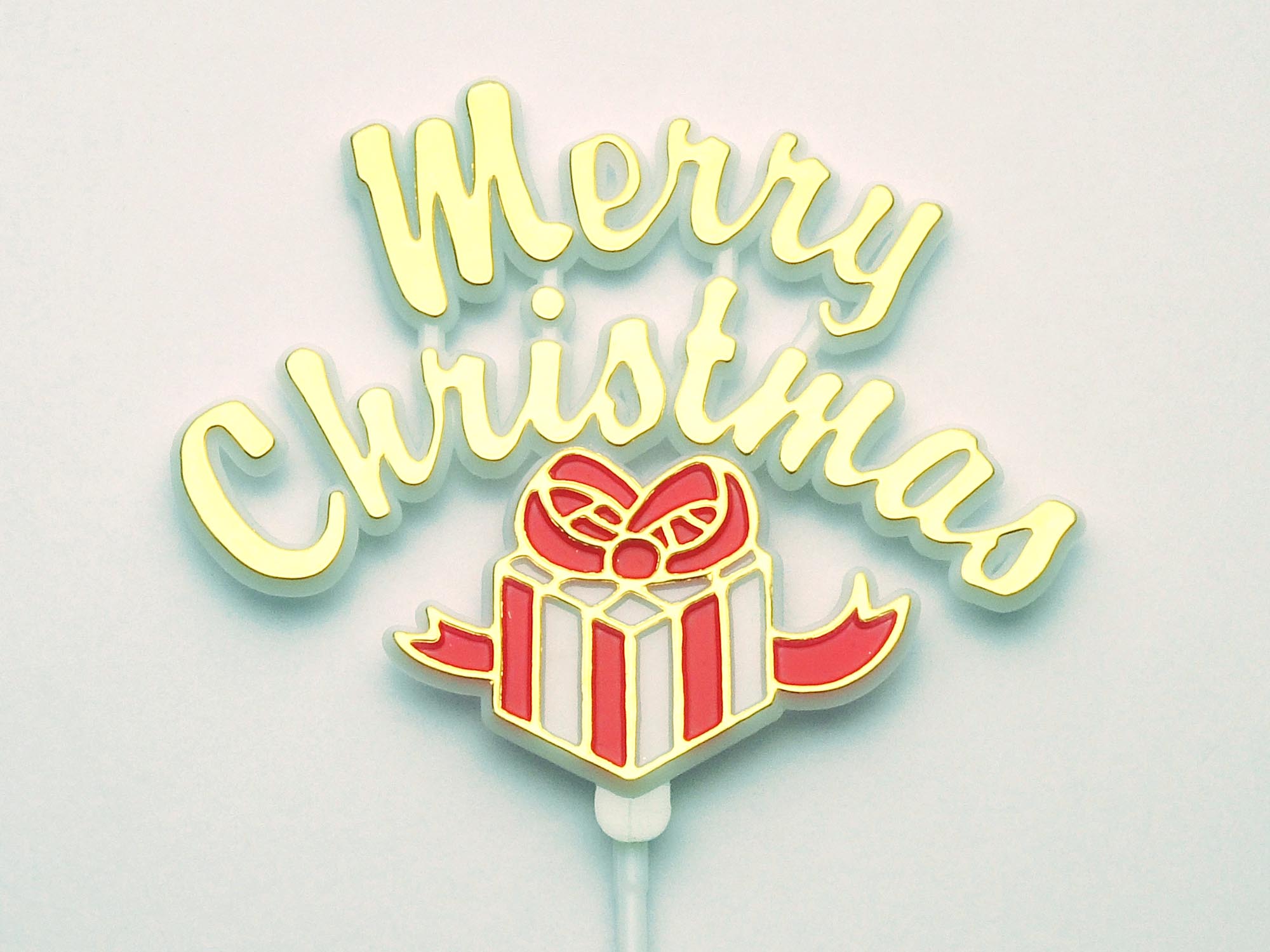 Merry Christmas with gift on 9.5″ pick
