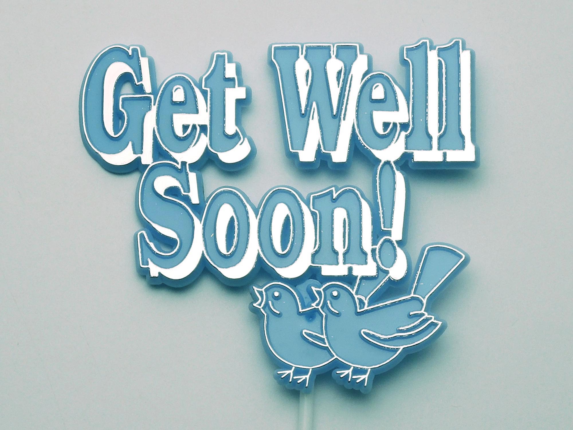 Get well soon wording with twice birds on 9.5″ pick