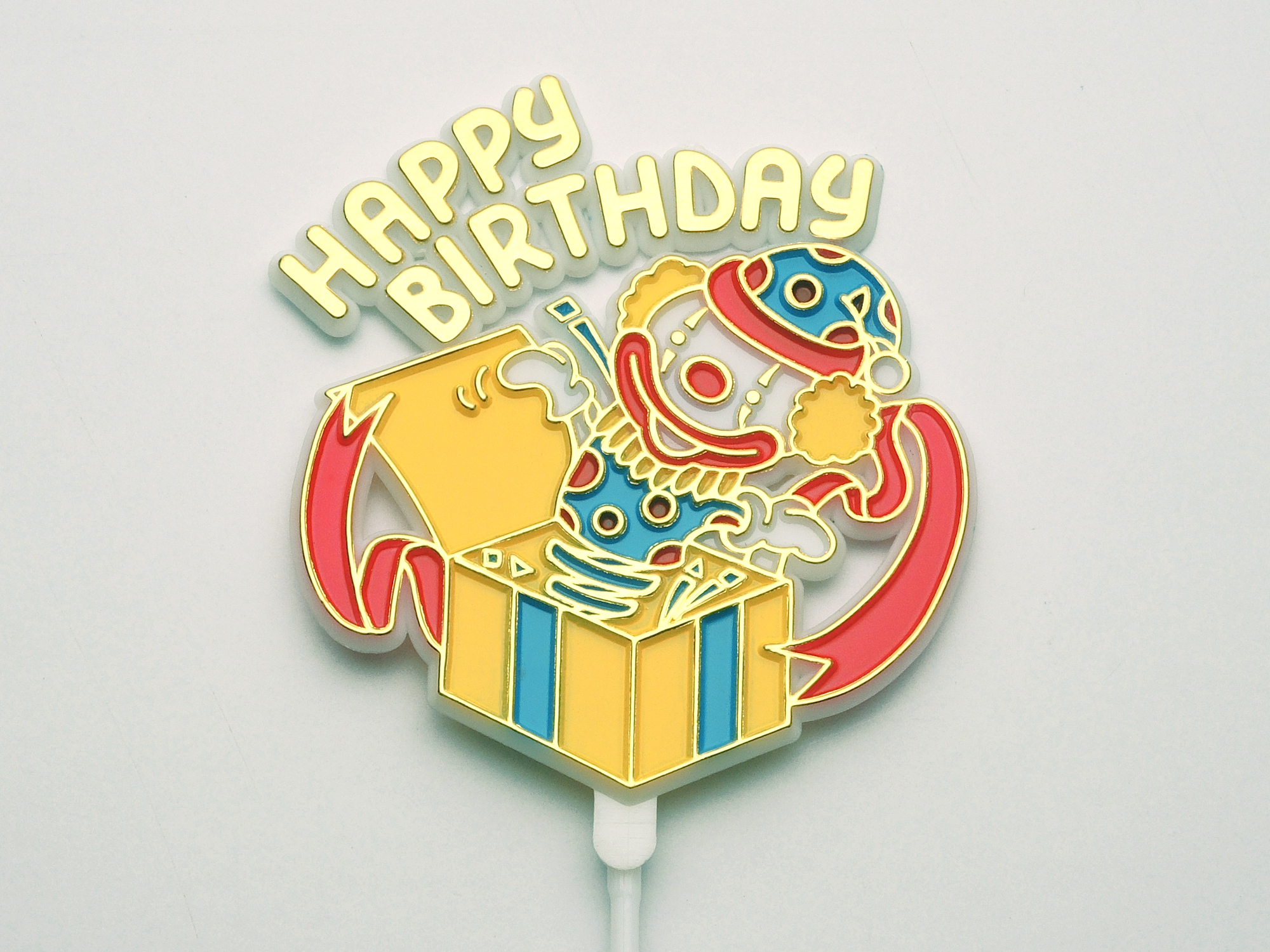 Clown in a gift with Happy Birthday on 9.5″ pick